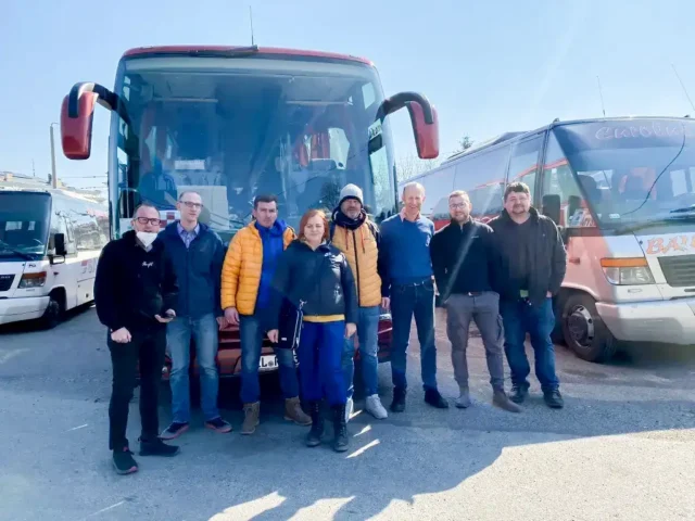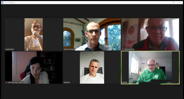 Bei einer Videokonferenz zur Vorbereitung der Fahrt mit einem LKW mit einem kleinen Teil des Teams: